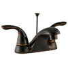 The Ashland Bathroom Faucet features a dual handle design, 3-hole, 4-inch mount and brass pop-up for sealing your drain. This faucet has an AB1953 platform hybrid body with zinc handles and is finished in oil rubbed bronze. The brass waterways contain zinc and copper which are known to ensure safe and clean water for your family. The 1.2-gallon per minute flow rate ensures a steady water flow after years of everyday use and the high vaulted spout extends 4.2-inches which leaves plenty of room for washing your hands. This faucet has a quarter turn stop lever handle operation.