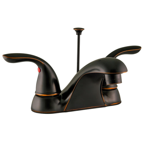 Dual handle design to easily Adjust the water temperature, finished in oil rubbed bronzeClassic 3 hole 4-inch centerset Mount comes with a lift rod and pop up stopper1.2-gallon per minute flow rate ensures a steady water flow after years of everyday useBrass waterways to ensure safe and clean water for your familyDurable ceramic cartridge contains wear-resistant ceramic plates to prevent corrosion from water flow