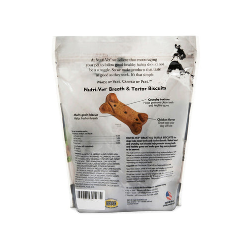 Nutri-Vet Breath & Tartar Biscuits freshen your dog’s breath while supporting good dental health. They’re veterinarian formulated with a hard, crunchy texture that stimulates gums and scrapes away plaque as your dog chews. Because regular dog teeth cleaning and dental care is one of the most important things you can do for your pet, giving these dental treats for dogs is a no-brainer.